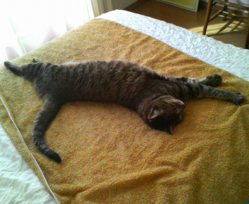 最初は ねこプーちゃんの目ヤニ満載のベッドカバーw
