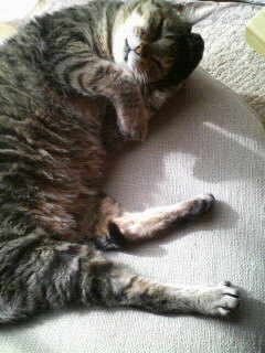 飼い猫プーちゃんは、定位置のソファの背もたれの上で爆睡ちう。