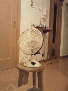 扇風機が乗っかってる、ちっこい椅子なんである。